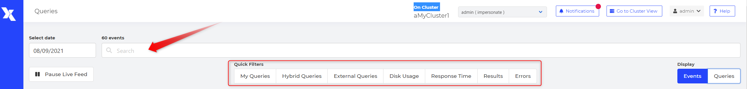 | diskUsage | : (means =) | true/false | Queries using disk access for any reason (Spill to disk, Disk backed results or BigIndex) | Disk Usage | diskUsage:true |