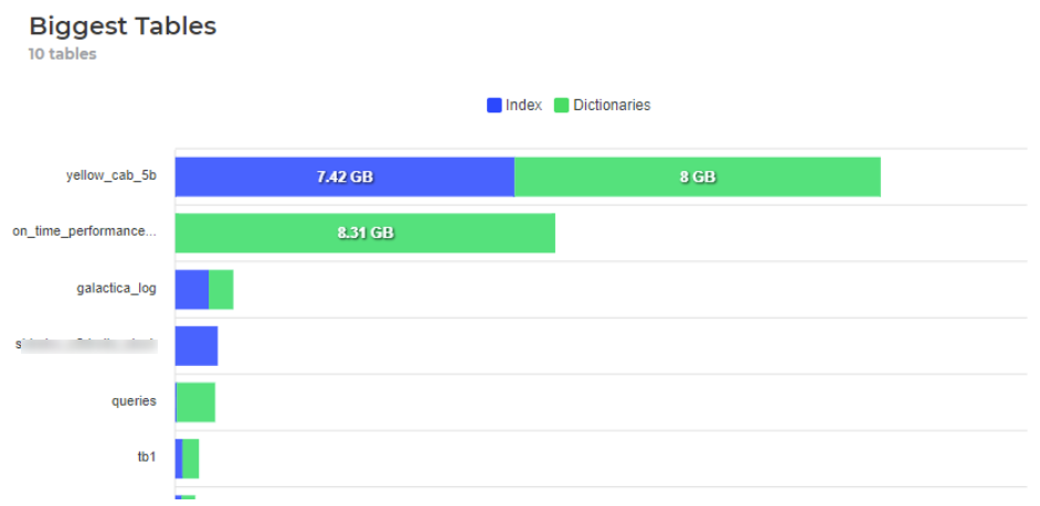 As you can see, Memory usage is split into Index and Dictionaries size.