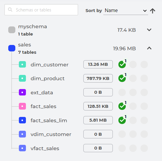 - a button to load & view the first 100 lines of the tables
