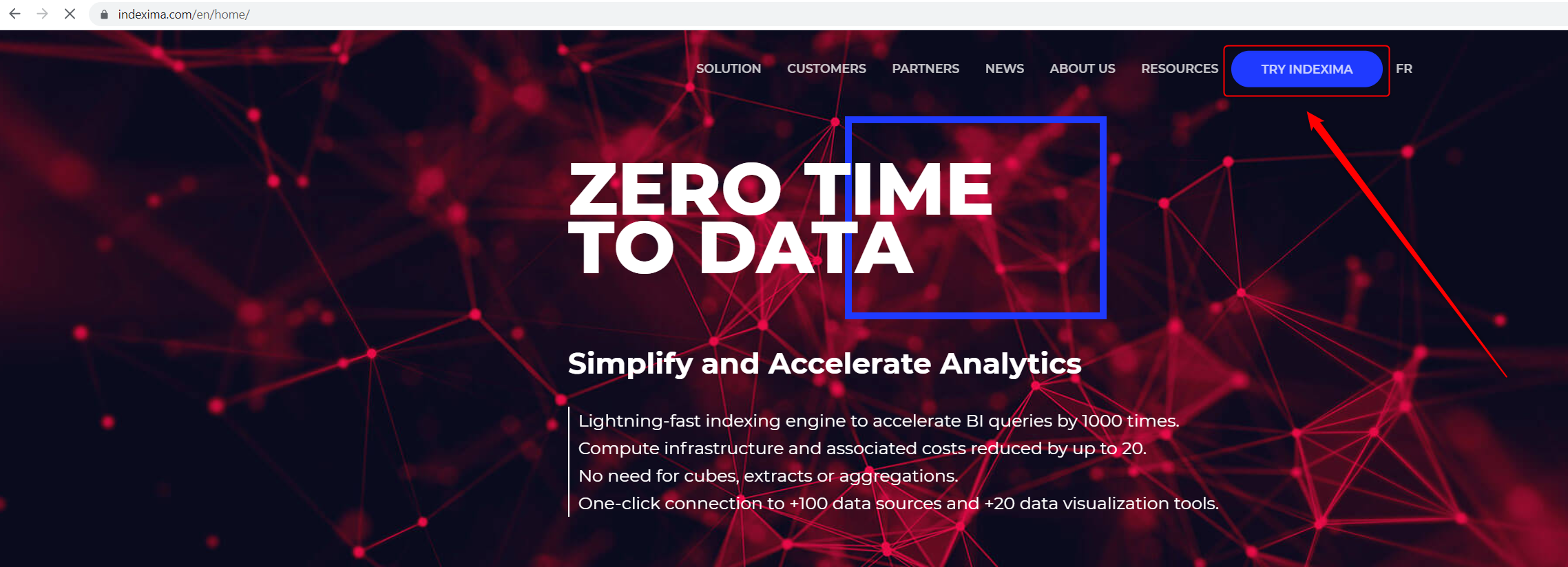 Click on "Try Indexima" on Indexima Website to get your credentials and access to the Indexima trial platform.